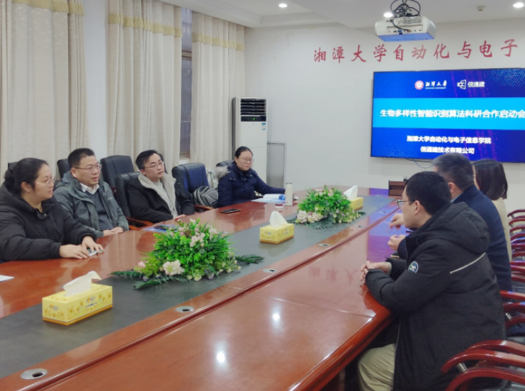 2024年1月8日,湘潭大学与信通建技术有限公司生物多样性智能识别算法科研合作研讨会在湘潭大学召开。湘潭大学自动化与电子信息学院院长姚志强携团队出席研讨会。