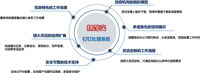 基于党的十八大对党政机关“推行电子政务减低行政成本、提高行政效能”的要求,围绕党政监督督办核心需求,进行通用化的产品设计,为党政机关提供的一系列标准电子政务解决方案。