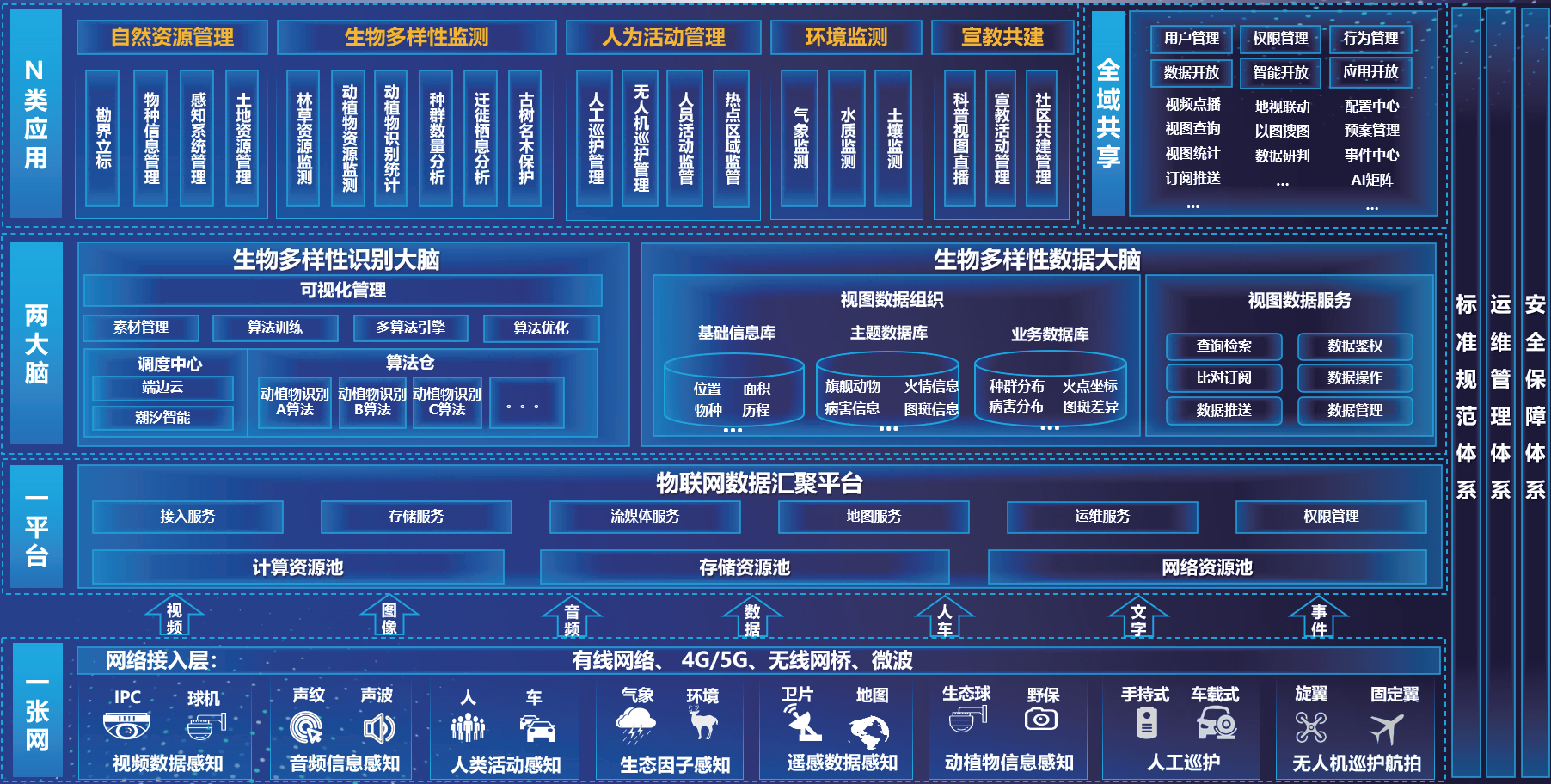 1、生物多样性识别大脑:基于深度学习神经网络,构建实时处理前端监控音视频信息的算法平台。