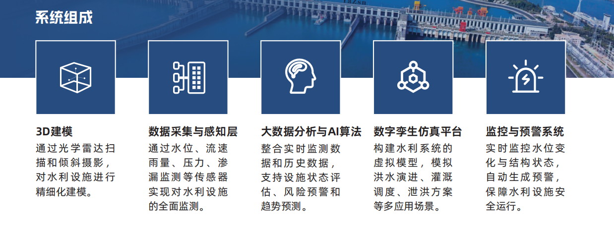 5、监控与预警系统:实时监控水位变化与结构状态,自动生成预警,保障水利设施安全运行。